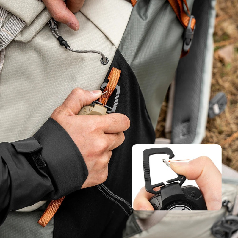 Встроенный карабин — легко крепится к рюкзаку, поясу или MOLLE-системе.